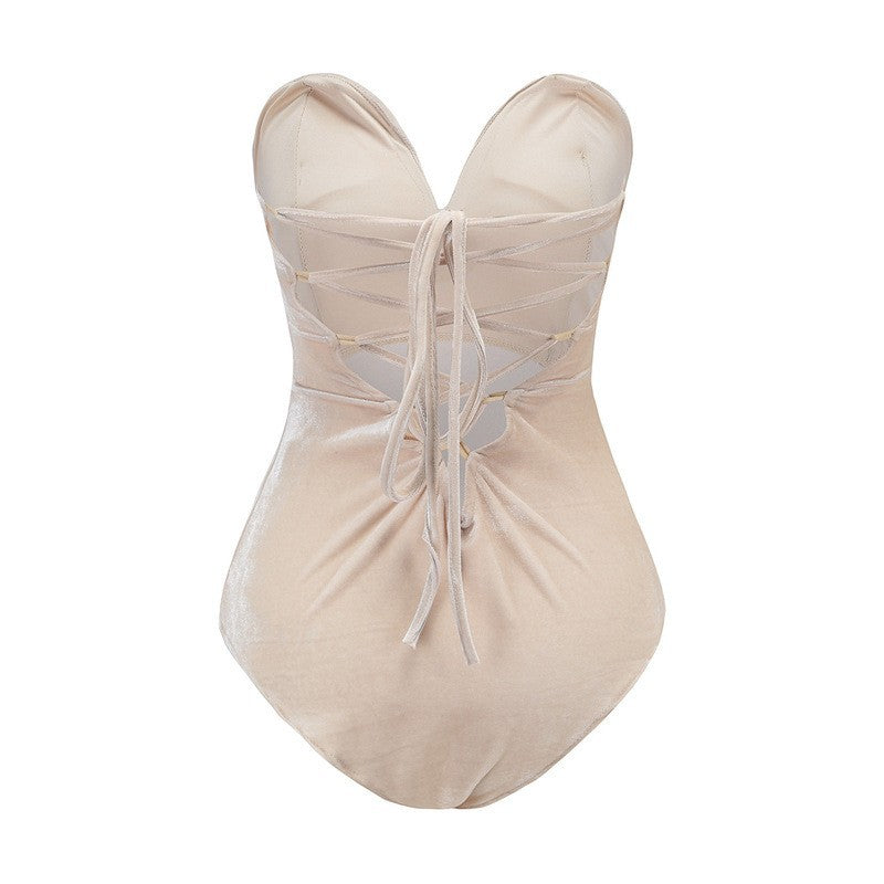 Modell: Samtbody mit Herz-Ausschnitt zum Schnüren
