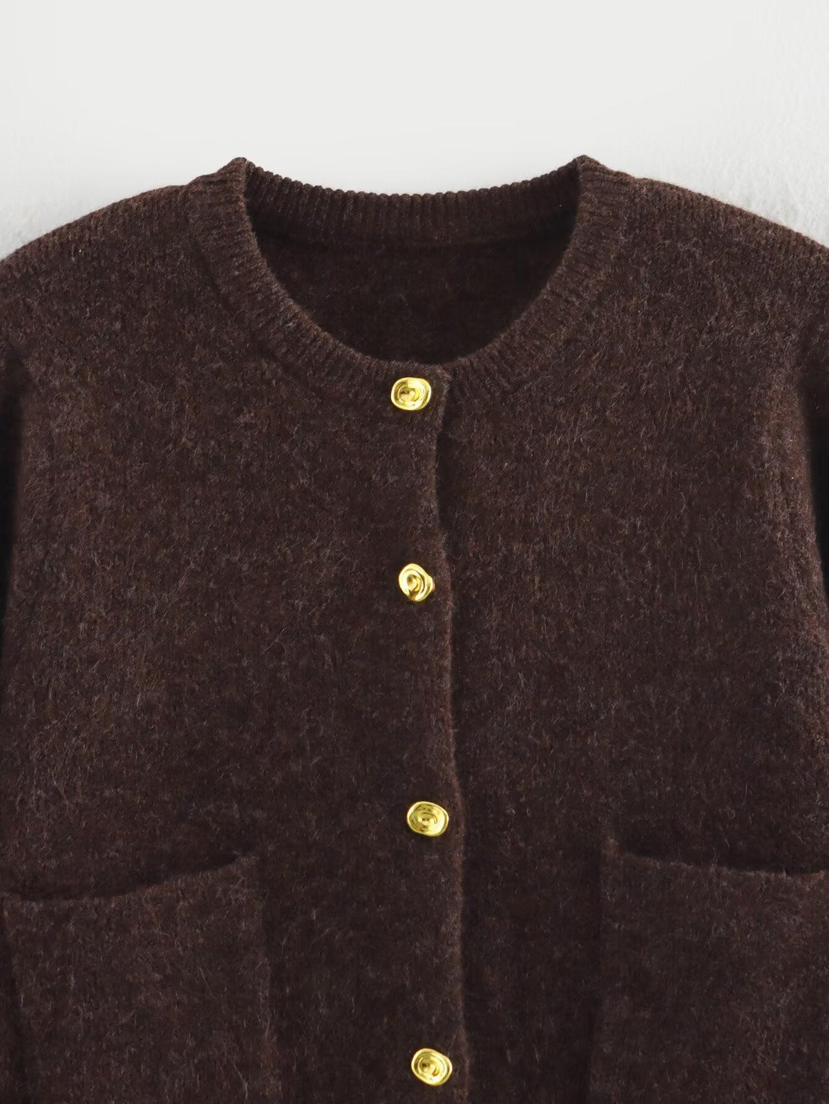 Dieses Strickset besteht aus einer kurzen Strickjacke mit aufgesetzten Taschen und einem passenden A-Linien-Minirock – zusammen entsteht ein femininer, cosy Look für Herbst und Winter. Der weiche Stoff schmiegt sich angenehm an und lässt sich sowohl zusammen als Co-Ord als auch einzeln super kombinieren.